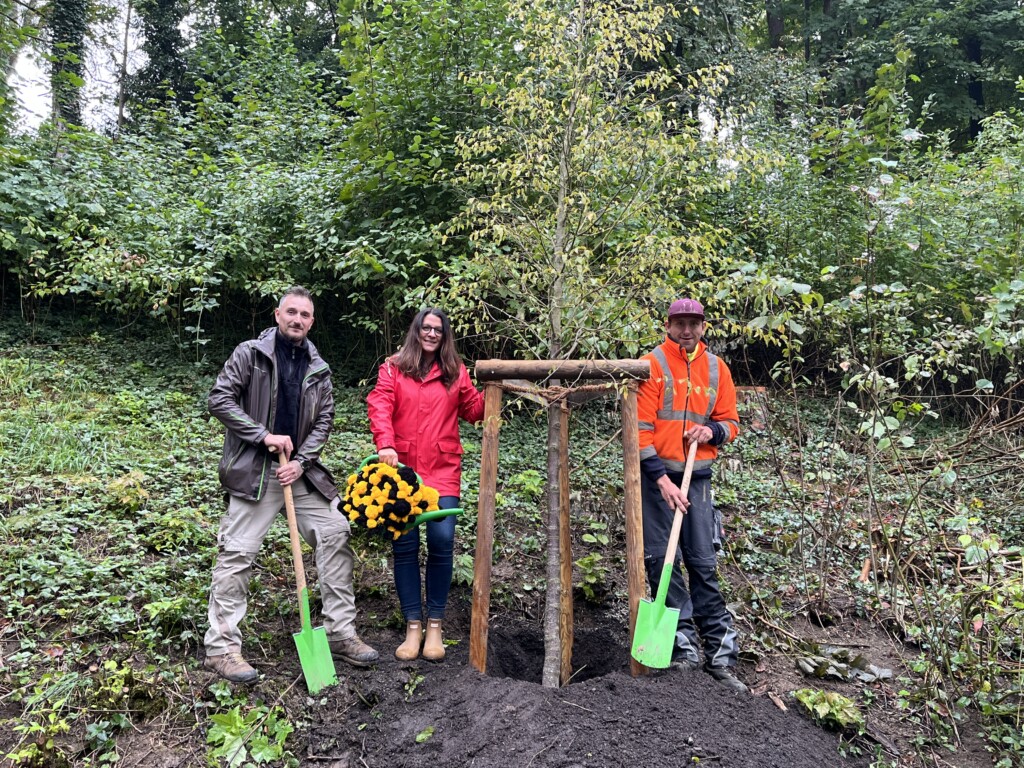 Kurzfristige Pflanzaktion einer Hainbuche am Stadtgraben ersetzt umgestürzten Baum