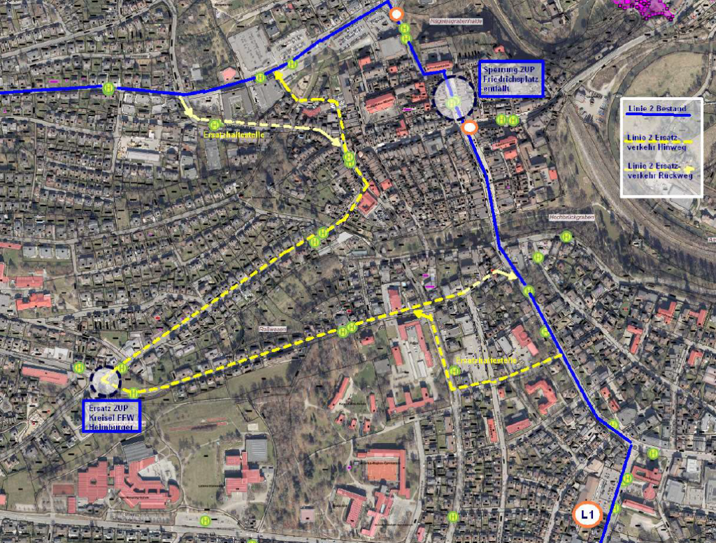 Geänderte Linienführung während der Bauzeiten: