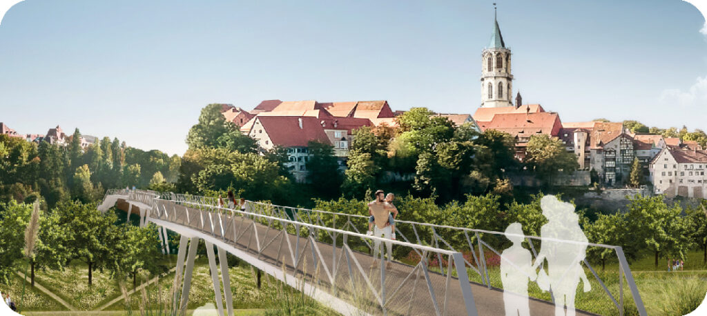 Neue Wege und Brücken – barrierefrei oder barrierearm – sorgen dafür, dass die Innenstadt künftig besser mit dem revitalisierten Neckar und dem Gewerbepark Neckartal verbunden ist. So eröffnen sich ganz neue Perspektiven auf die historische Stadt. Spaziergänge und Ausflüge mit Kinderwagen, Rollator oder Rollstuhl werden dort möglich, wo vorher topographische Grenzen waren. Besonders die barrierefreie Erreichbarkeit vieler Areale stellt einen wichtigen Fortschritt dar.