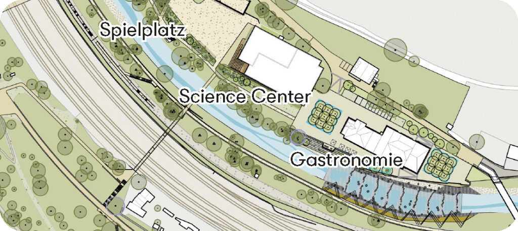 Ein besonderer Anziehungspunkt wird das Science-Center auf dem früheren ENRW-Areal sein. Es entsteht in direkter Nachbarschaft zu einem neu gestalteten Spielplatz, gastronomischen Angeboten und weiteren Freizeitmöglichkeiten – ein lebendiger Treffpunkt für Jung und Alt mitten im Neckartal.